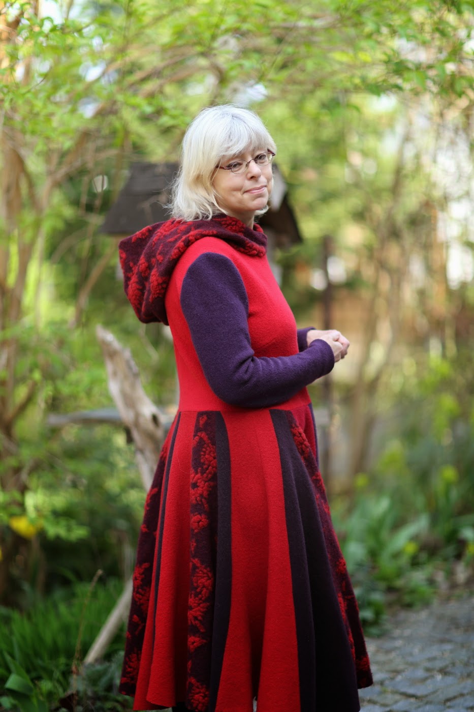 Farbenfrohes Winterkleid mit Kapuze aus Walkstoff
